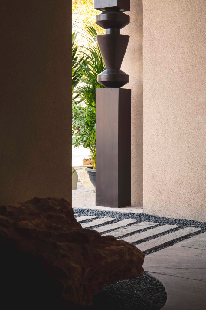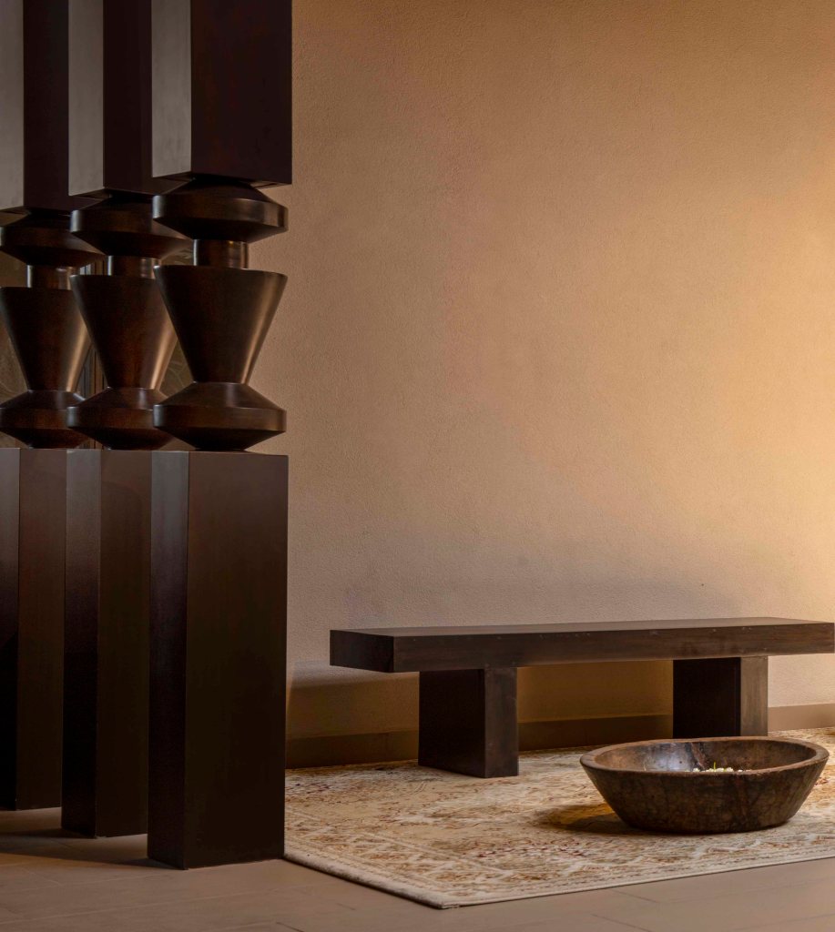 The introduction of an inward curve layering the entrance, punctuated by a wooden column, works to creates a mystery to the space. The journey unfolds as a sort of “rite of passage” for the experience ahead, in the space and metaphorically. Plantation, natural light and textures work towards blurring the boundaries between what we perceive as indoor and outdoor treatment.