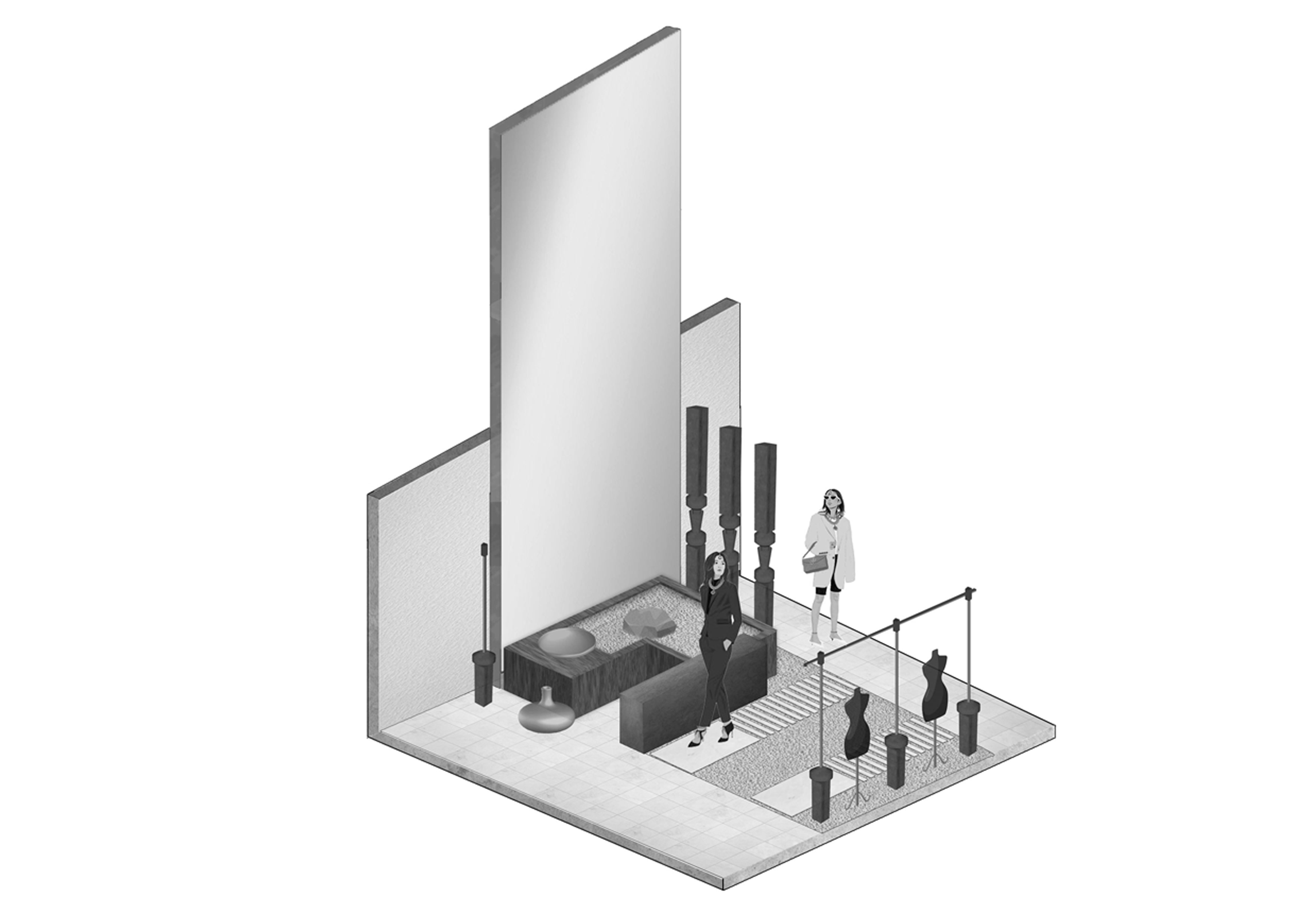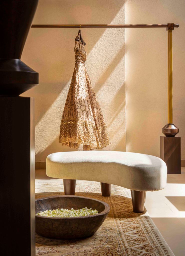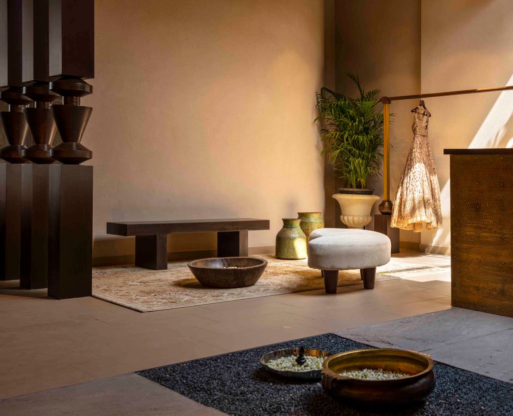 Astha Narang is one of the young bridal wear designers catering to the big fat Indian weddings in India and internationally. Her clothes are a subtle interpretation of the traditionally heavy Indian bridal wear, for the modern brides. Hence, our intent was to represent and amalgamate this shifting cultural landscape into the design. To achieve this balance, we decided to create a clean backdrop for the designer’s clothes, along with some traditional details woven seamlessly into the furniture and partition screens. The space allows users to experience various zones within the studio but with similar underlying values, stitching together the “personality” of the space.