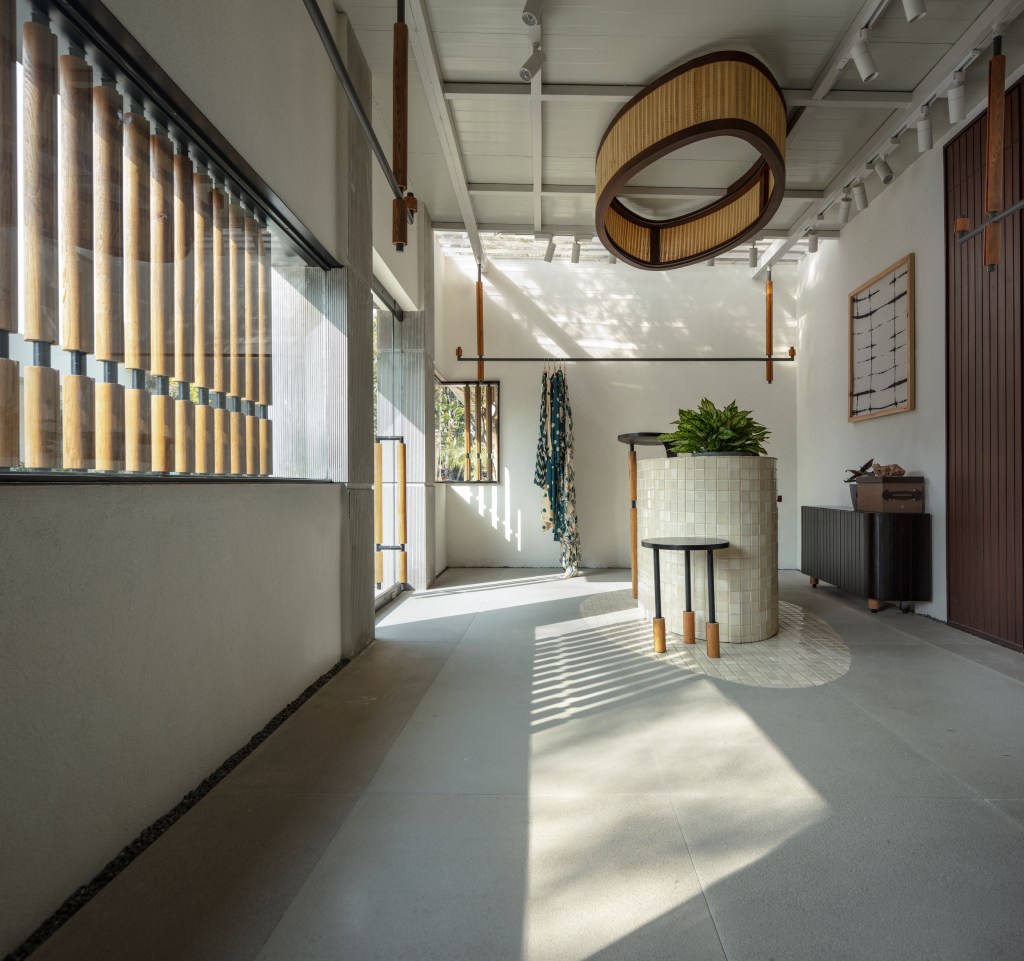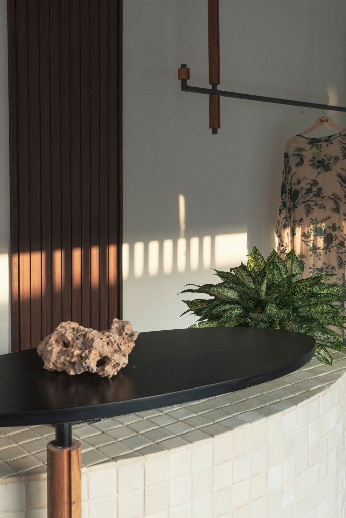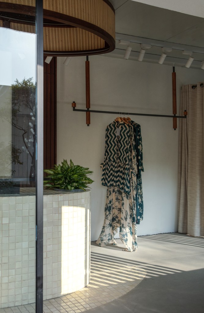 Resonating with the brands ideology, we aimed at creating a muted backdrop, punctuated and adorned by a repeating modular detail, stamped across the project, much like the Dabu (hand block) prints. These modules take the form of various functional elements, while lending softness and warmth to the textural canvas. This signature elemental language works as a stitch between the space and the brand itself.