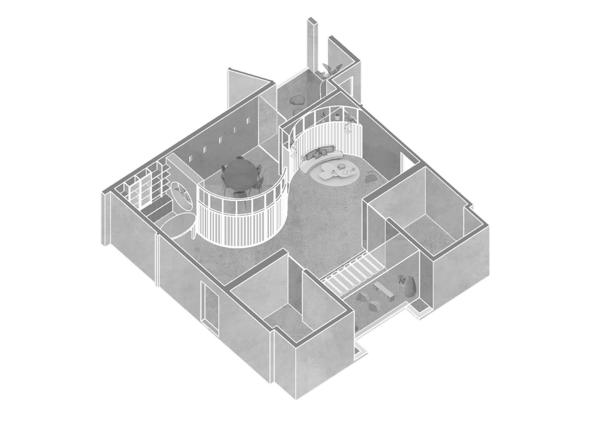 A raised indoor space with a glass skylight anchors the space together forming an informal space used for a breather, also doubling as the entrance to future units planned. Designed as a recreational den, the Entertainment area showcases informal spaces flowing into one another, each presenting itself as a niche of its own.